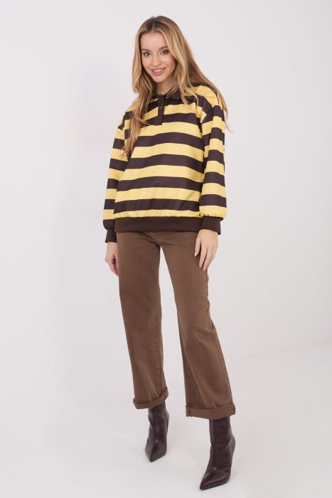 Bluza damska z długim rękawem oraz kapturem. Bluza o luźnym kroju z asymetrycznym dołem.